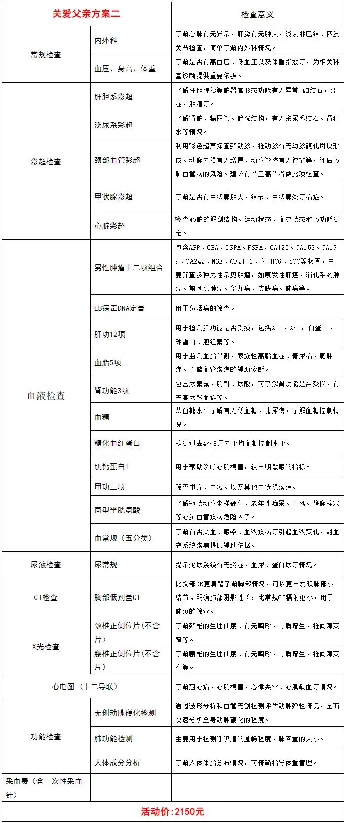除了以上专项检查福利,体检中心同时还提供了以下几个全面体检方案,通过多维度检查帮助人们了解身体状况。