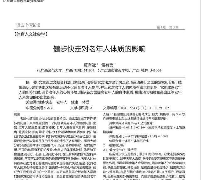 [1]莫有斌,雷有为.健步快走对老年人体质的影响[J].搏击(体育论坛),2011,3(03):29-30.