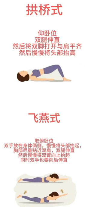 脊神经的粘连,可做颈部“米”字操,腰部“拱桥式”、“飞燕式”操,以增强腰背肌的力量,增加承重力。温馨提示:以上姿势锻炼,如有不适,及时就医。