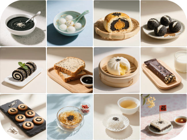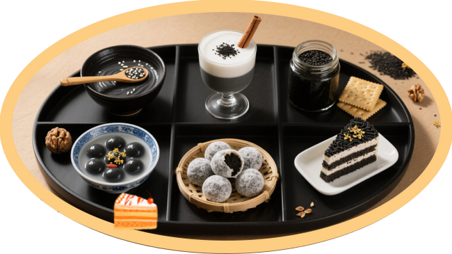 黑芝麻可直接作为食材食用,也能加工成多种美食。日常将其炒熟后直接嚼食,或磨成黑芝麻粉,加入牛奶、豆浆、粥品中;还能制成黑芝麻糊、黑芝麻汤圆、黑芝麻酱等传统食品,如南方经典的“黑芝麻糊”,口感香甜软糯,是滋补佳品。此外,黑芝麻也可用于榨取芝麻油(香油),作为烹饪调味油,增添食物风味。