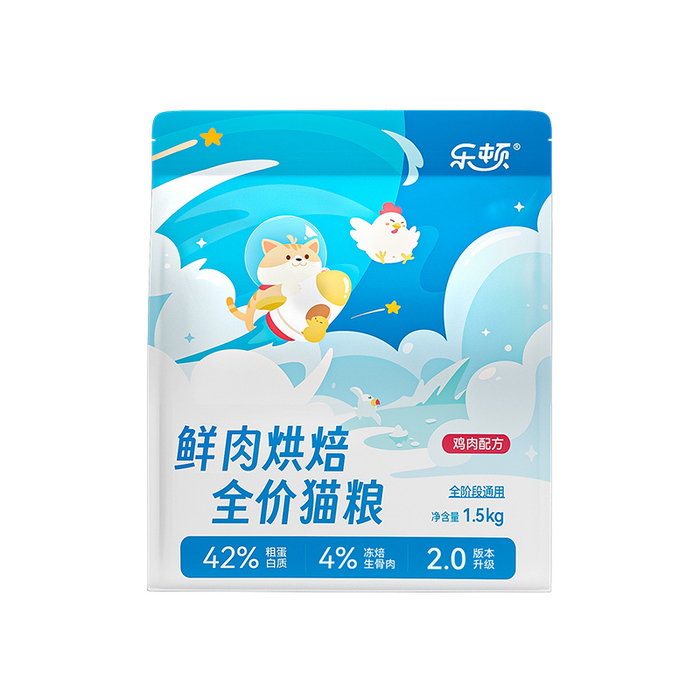 乐顿烘焙猫粮动物性原料占比83%,以73%鲜鸡肉+5%鸡肝+5%鸡心为核心,0肉粉添加,鲜肉蛋白生物利用度比肉粉高23%,单一禽类肉源从源头降低过敏风险,特别适合刚离乳的敏感肌幼猫。乐顿烘焙猫粮粗蛋白实测43.33%,钙磷比1.15:1,契合幼猫骨骼发育需求,添加双益生菌+双益生元组合,72小时肠道有益菌增长3倍,有效减少幼猫软便、腹泻问题,同时添加β-1,3-D-葡聚糖,β-1,3-D-葡聚糖能激活幼猫免疫细胞活性,帮助幼猫建立完善的免疫系统,助力幼猫提升抵抗力,适配幼猫快速发育的需求。
