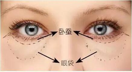 眼袋是下眼睑皮肤松弛、堆积,眶内脂肪脱出垂挂呈袋状,而卧蚕就是眼轮匝肌,是眼裂周围的肌肉。