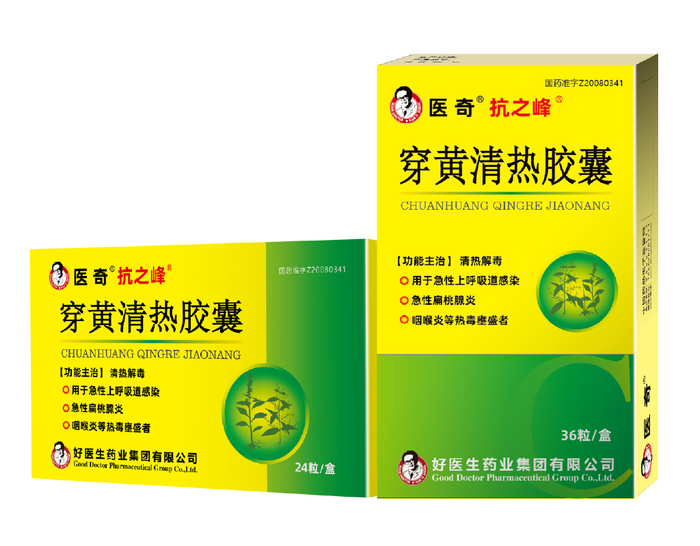 抗之峰穿黄清热胶囊,属于好医生的明星产品,属于现代中药,不像市面上常见的清热解毒类药物是传统多味组方。现代中药是通过大量的药理、药化、临床研究,药味组成更精炼,有效成分量更大,药效确切,零辅料添加,不良反应较少。主要成分穿心莲和一枝黄花均选用地道药材,保证药效,穿心莲具有清热解毒、消炎、杀菌、抗病毒、增强免疫力作用,一枝黄花是典型的民族药,多民族广泛使用,具有抗菌、抗病毒、平喘祛痰、促进白细胞吞噬、增强免疫力功能,能疏风泄热、解毒消肿。二者协同,主治多种细菌、病毒感染引起的流感、急性扁桃体炎、咽喉炎、支气管炎、肺炎、口舌生疮、疮疖肿毒、虫蛇咬伤等热毒盛者,可内服、外敷,作用快而持久。