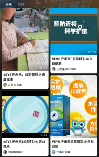 参与踊跃,覆盖面广: 在短短 [6月5日—6月25日] 的活动期内,挑战赛话题 #EYE护未来,益路睛彩 下共征集到来自各行各业不同共鸣用户的原创视频作品。参与者年龄跨度大,涵盖儿童、青少年、上班族、中老年等不同群体,地域覆盖全国 [上海、江苏、浙江、福建、四川等],充分体现了全民对眼健康的共同关切。